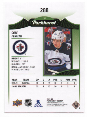 2021-22 Upper Deck Parkhurst ePack Bronze Border Parallel #288 Cole Perfetti RC