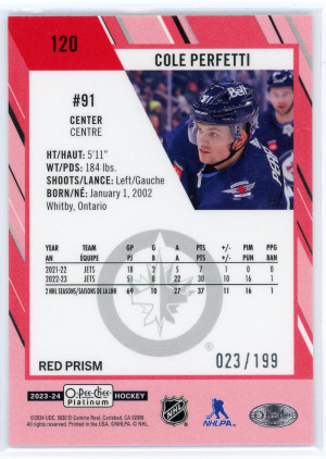 2023-24 O-Pee-Chee Platinum #120 Cole Perfetti Red Prism 23/199