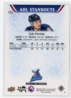 2020-21 Upper Deck AHL Cole Perfetti Gold 13/25