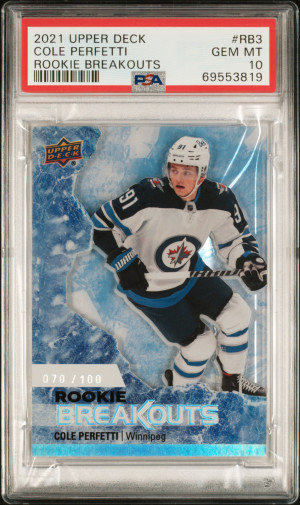 21/22 UD SERIES 2 ROOKIE BREAKOUTS #RB3 COLE PERFETTI RC (070/100) PSA 10 - POP 1