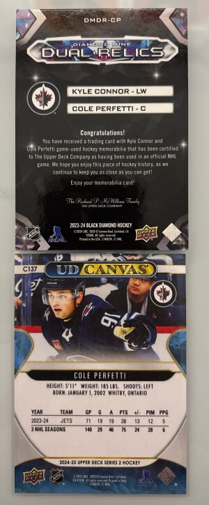 2023-24 UD Ultimate Collection Signatures Cole Perfetti Auto Jets