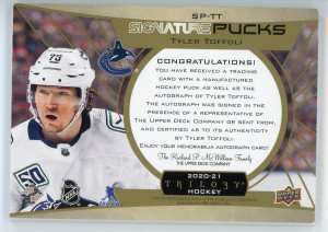 2020-21 UD Trilogy Tyler Toffoli Signature Pucks #SP-TT