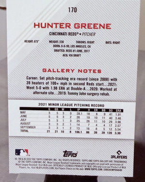 2022 Topps Gallery - Hunter Greene #170 (RC)