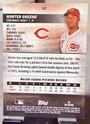 2024 Topps Stadium Club - Hunter Greene #92 Red Foil