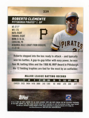 2024 Topps Stadium Club Chrome #239 ROBERTO CLEMENTE Rare PURPLE REFRACTOR #/75 Pittsburgh Pirates