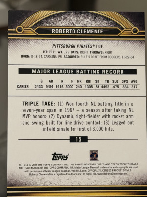 2024 Topps Triple Threads - Roberto Clemente #15 Refractor Pittsburgh Pirates SP