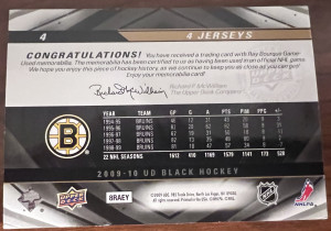 2009-10 Ray Bourque Upper Deck UD Black #4 4 Jerseys quad patch /99