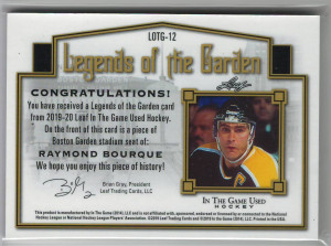 19/20 LEAF ITGU LEGENDS OF THE GARDEN GREEN #LOTG-12 RAY BOURQUE 1/1