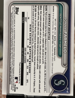 2024 Bowman Chrome Mega Box Jonny Farmelo SGC 9.5