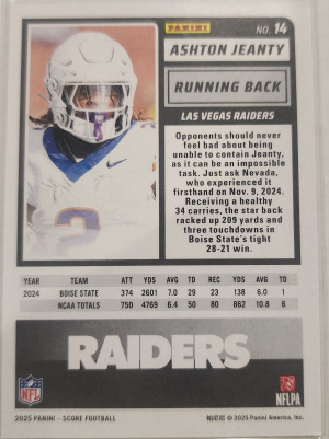 #3 Ashton Jeanty 2025 Score - Hot Rookies Artist's Proof #/35