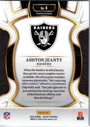 2025 Panini Select #4 Ashton Jeanty Select Certified Rookies