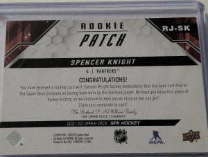 2021-22 Upper Deck SPx Hockey Spencer Knight Rookie Jersey Patch/35
