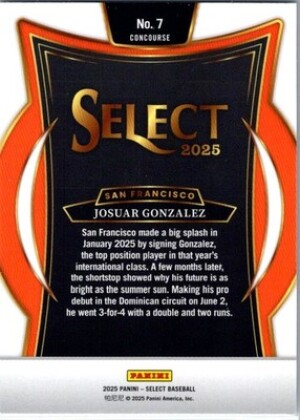 2025 Panini Select #7 Josuar Gonzalez
