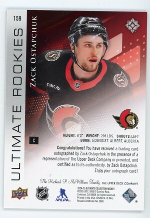 Zack Ostapchuk 2024-25 Ultimate Collection Rookie Autograph 296/299 #159