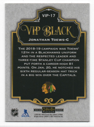 2019-20 O-Pee-Chee Platinum ePack VIP Black Achievements #VIP-17 Jonathan Toews