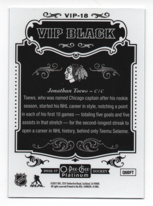 Jonathan Toews - 2016-17 O-Pee-Chee Platinum VIP Black Achievements #VIP-18