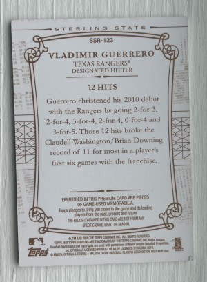 2010 TOPPS STERLING VLADIMIR GUERRERO GAME USED JERSEY RELIC SSR-123 SN 1/10 SSP123