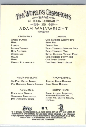 2012 Topps Allen & Ginter #319 Adam Wainwright
