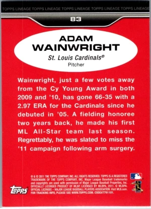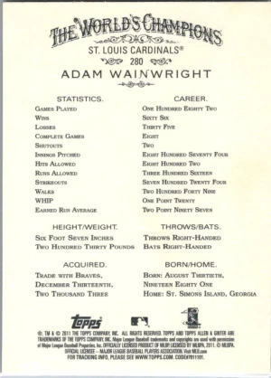 2011 Topps Allen & Ginter #280 Adam Wainwright