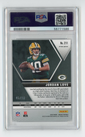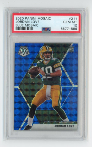 2020 Panini Mosaic JORDAN LOVE Rookie RC BLUE PRIZM #/99 GREEN BAY PACKERS #211 PSA 10 GEM