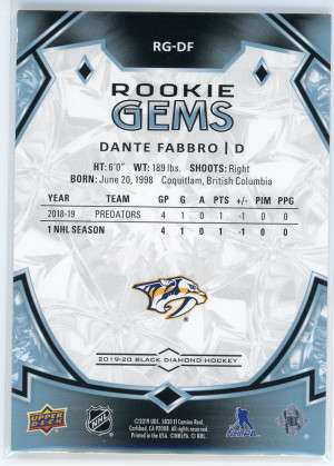 2019-20 Black Diamond Dante Fabbro Rookie Gems Spectrum 7/99