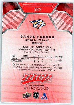 2019-20 MVP #237 Dante Fabbro Rookie Parallel 96/100