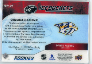 2019-20 Upper Deck Ice #IBR-DF Dante Fabbro Ice Buckets Rookie Autograph 15/25