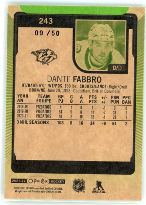 2021-22 O-Pee-Chee #243 Dante Fabbro Green 9/50