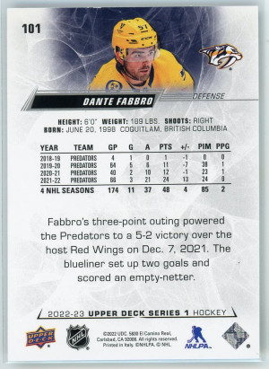 2022-23 Upper Deck #101 Dante Fabbro Exclusives 65/100