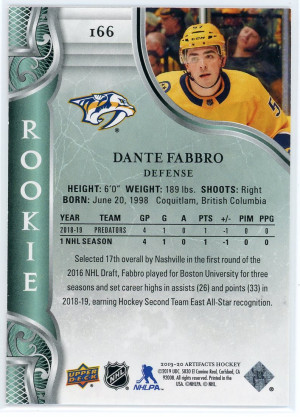 2019-20 Artifacts #166 Dante Fabbro Rookie Ruby /399