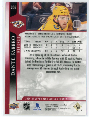 2020-21 Upper Deck #356 Dante Fabbro Exclusives 50/100