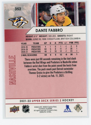 2021-22 Upper Deck #352 Dante Fabbro Exclusives 60/100