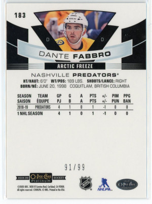 2019-20 O-Pee-Chee Platinum Dante Fabbro Rookie Arctic Freeze 91/99