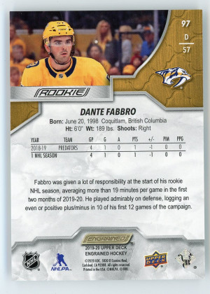 2019-20 Upper Deck Engrained Dante Fabbro Rookie Card /299