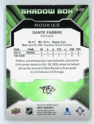 2019-20 SPx #SDF Dante Fabbro Shadow Box Rookies