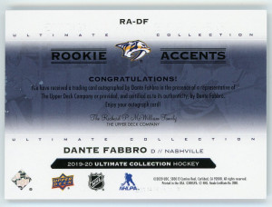 2019-20 Ultimate Dante Fabbro Rookie Accents Autograph /99