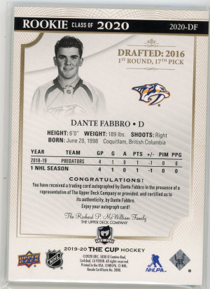 2019-20 The Cup Dante Fabbro Rookie Class of 2020 /249 #2020-DF