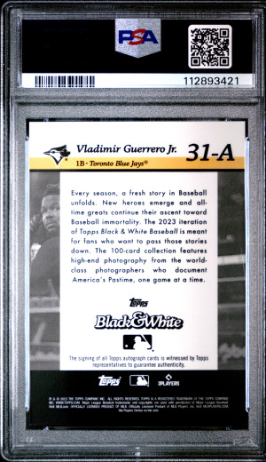 2023 TOPPS BLACK & WHITE SILVER FOIL AUTOGRAPH #31A VLADIMIR GUERRERO JR. (2/5) PSA 10 - POP 2