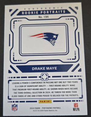 2024 Photogenic Rookie Portrait Drake Maye New England Patriots