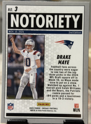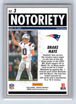 2025 Panini Mosaic -Notoriety Drake Maye #3