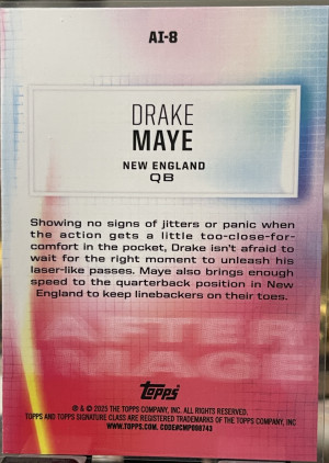 2025 DRAKE MAYE ToppsSignature Class Alter Image Rookie RC #AI-8NE Patriots