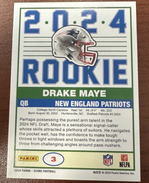 Drake Maye 2024 Panini Score Football Rookie Card #3