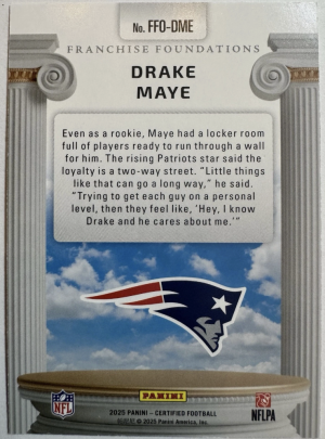2025 Panini Certified Drake Maye Franchise Foundations Pink /199 #FFO-DME NEW ENGLAND PATRIOTS