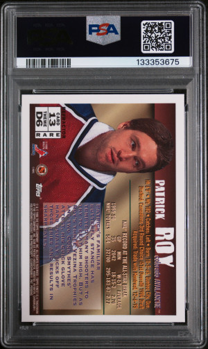 95/96 TOPPS FINEST REFRACTOR #145 PATRICK ROY PSA 9 - POP 6 - w/ COATING