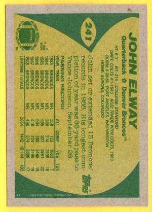 John Elway #241 1989 Topps