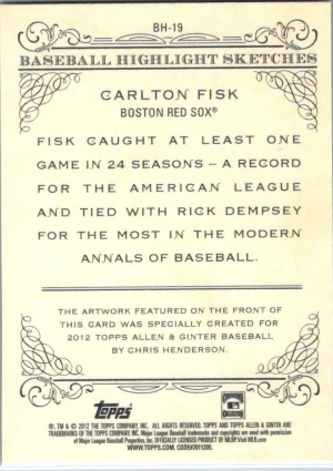 2012 Topps Allen & Ginter #BH-19 Carlton Fisk Baseball Highlights Sketches