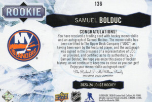 2023-24 The Cup Samuel Bolduc Rookie Auto Patch /249