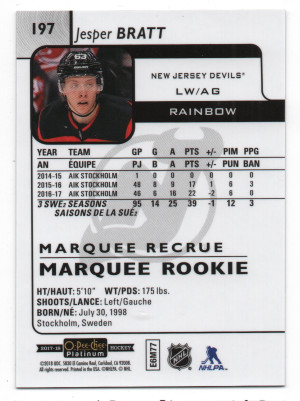 2017-18 O-Pee-Chee Platinum Rainbow Parallel #197 Jesper Bratt RC