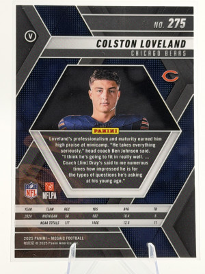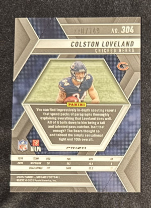 Colston Loveland 2025 Mosaic RC Chicago Bears Rookie Card