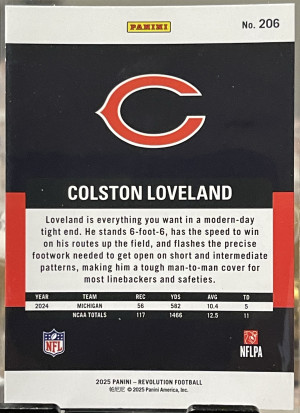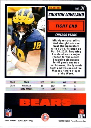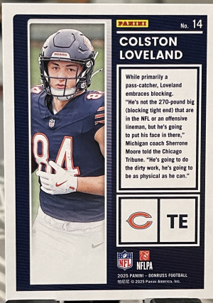 Colston Loveland RC2025 Panini Donruss The Rookies Insert Chicago Bears TE